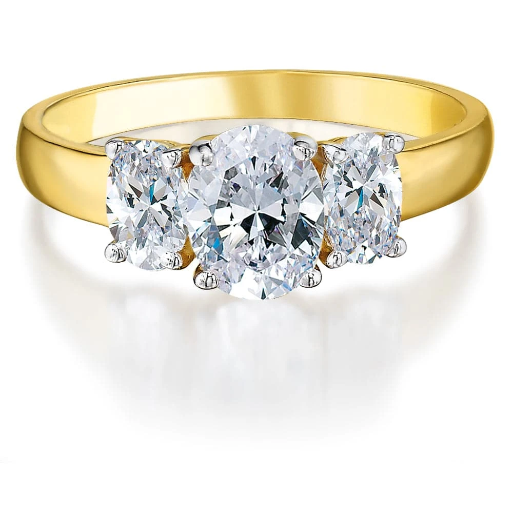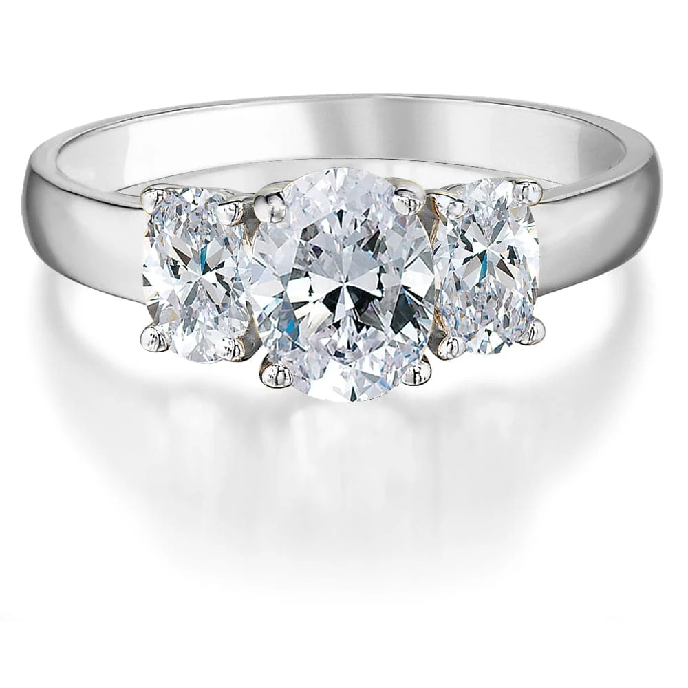 For a statement accessory that is sophisticated and timeless, yet totally unique, our Oval Trilogy Ring is an unmissable investment. Be the envy of the party with this sparkling oval-cut Tru-Diamonds™ ring, set with a total of 2.25 ct. t.w. Tru-Diamonds™ stones. So effortlessly stylish, you’ll never want to leave the house without this ring again.