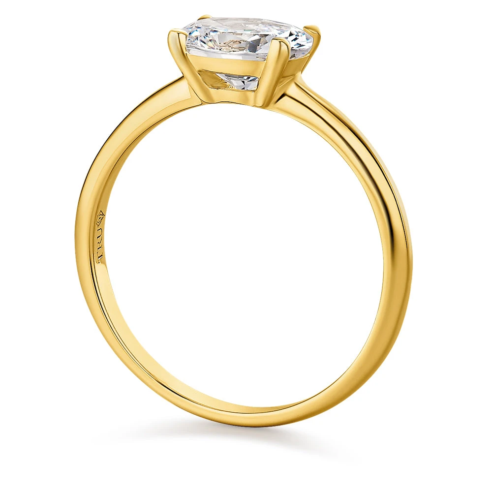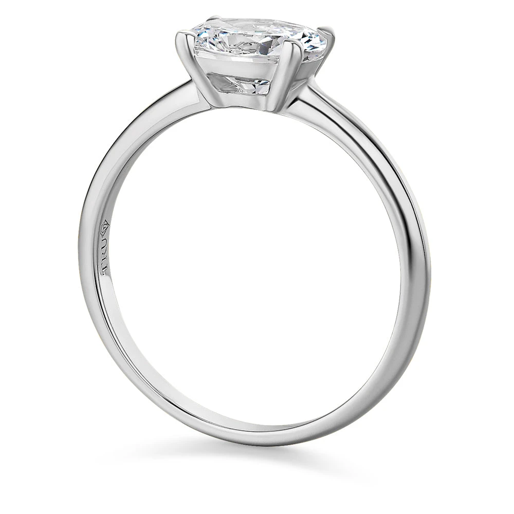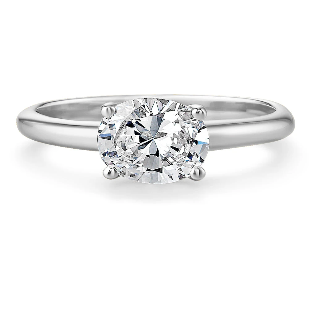 Set horizontally across the finger, the oval diamond is expertly secured within a sleek and modern setting, creating a dynamic and eye-catching aesthetic. The oval cut, with its graceful silhouette and radiant sparkle, exudes sophistication and glamour, making it the perfect centerpiece for this extraordinary design.