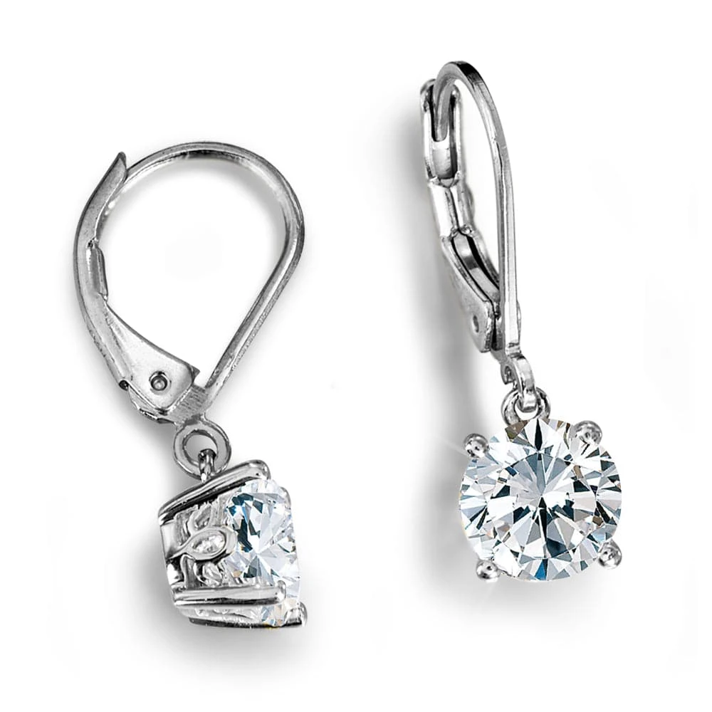 Fall in love with our Solitaire Drop Earrings which boast flawless Tru-Diamonds™ stones in an 18ct. gold or platinum clad setting which gives off just enough sparkle.