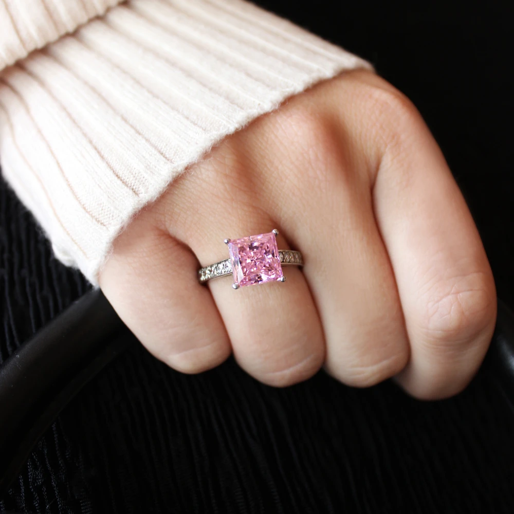 True to its name, the Classic Pink Princess Ring is designed to make you feel like a true princess when you wear it! With a sensational 4 carat princess-cut Pink Tru-Diamonds™ centre stone, complemented by a channel-set band, this ring combines luxury and style in its elegant design.