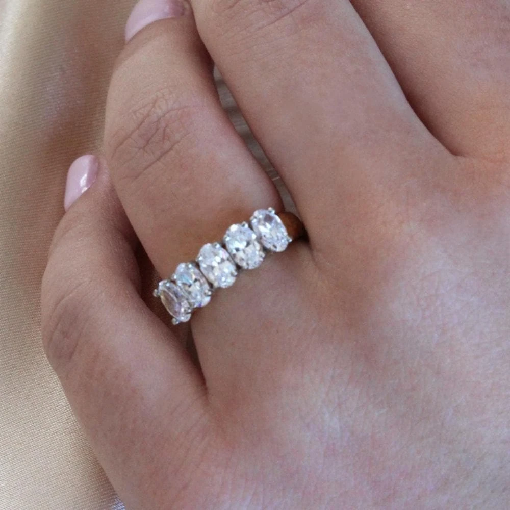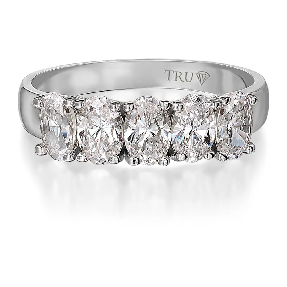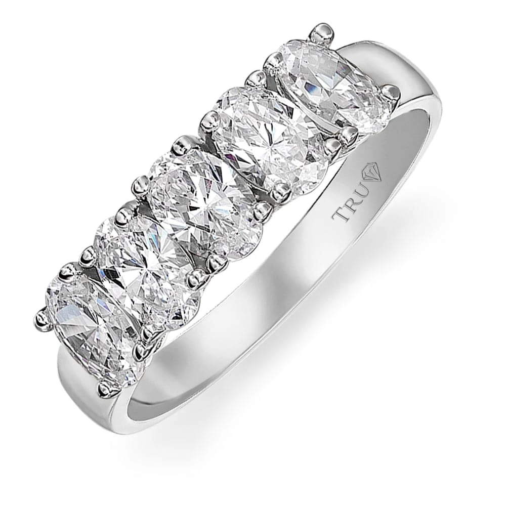 The five-stone eternity has become a long standing and unmissable style essential, which makes this Oval Five-Stone Ring a vital addition to your jewellery repertoire, or the ideal gift for someone special. Five oval-cut Tru-Diamonds™ totalling two and a half carats are set to perfection in this timeless, ideal for wearing to absolutely any event.