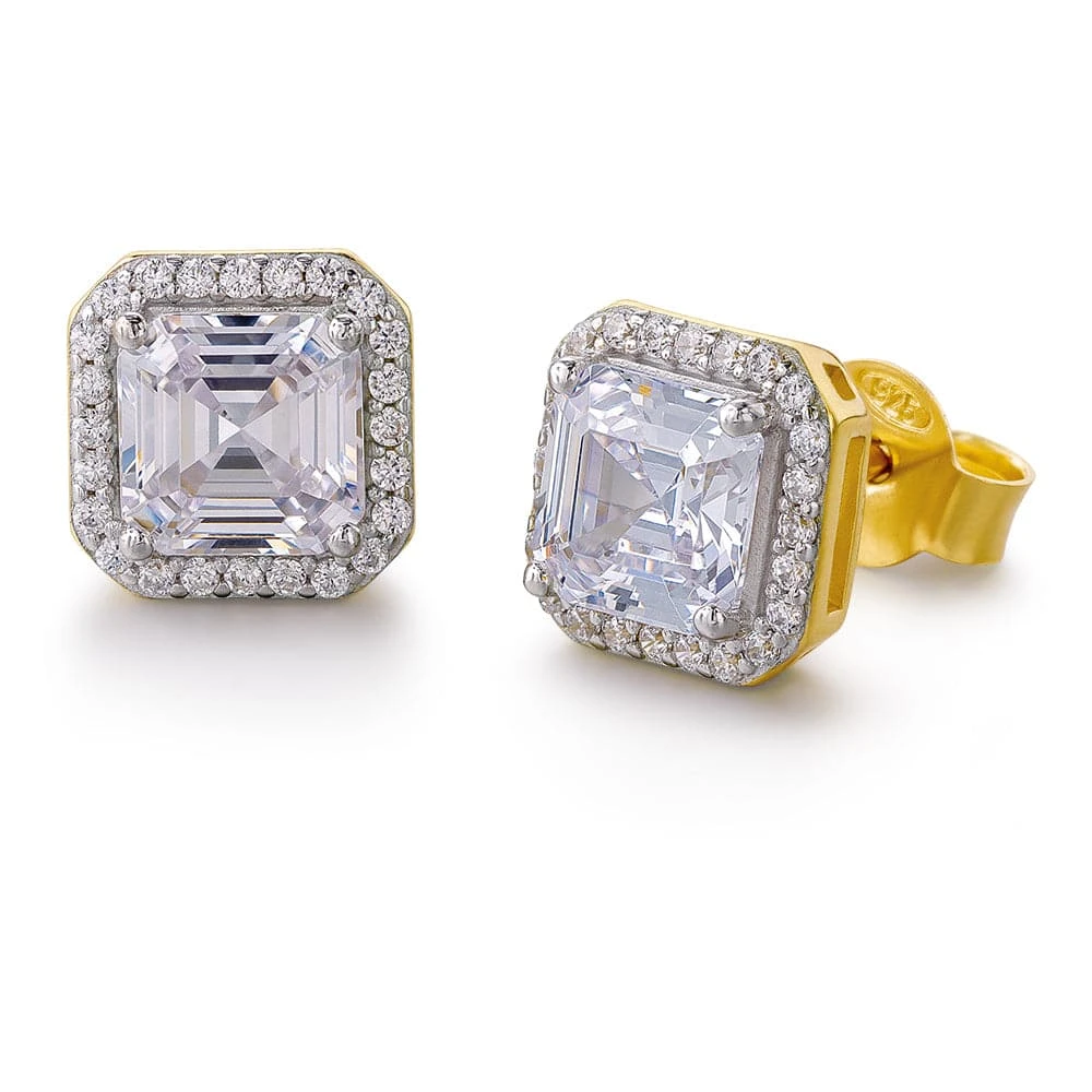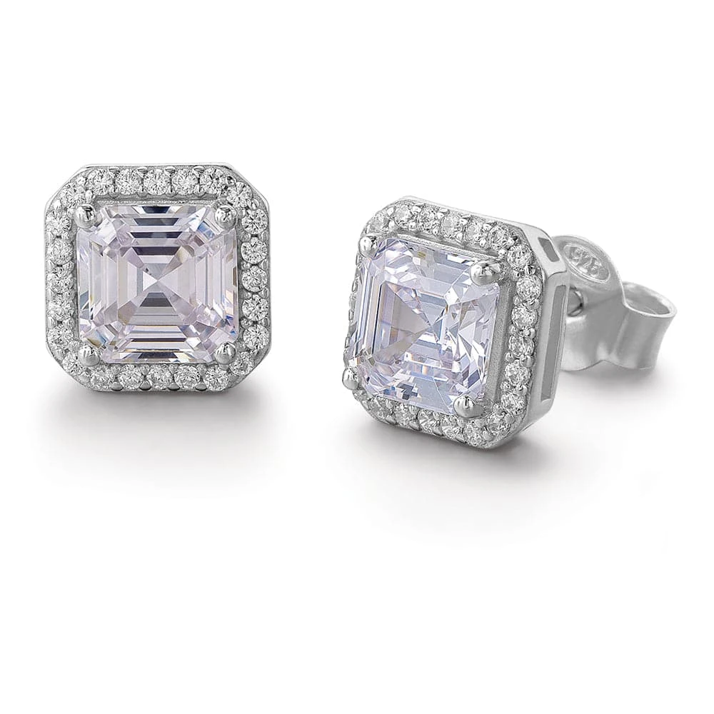 Our Asscher Cut Halo Studs showcase a 1 ct. asscher cut Tru-Diamonds™ gem framed by a halo of pavé set gems – giving you a look of sheer elegance.