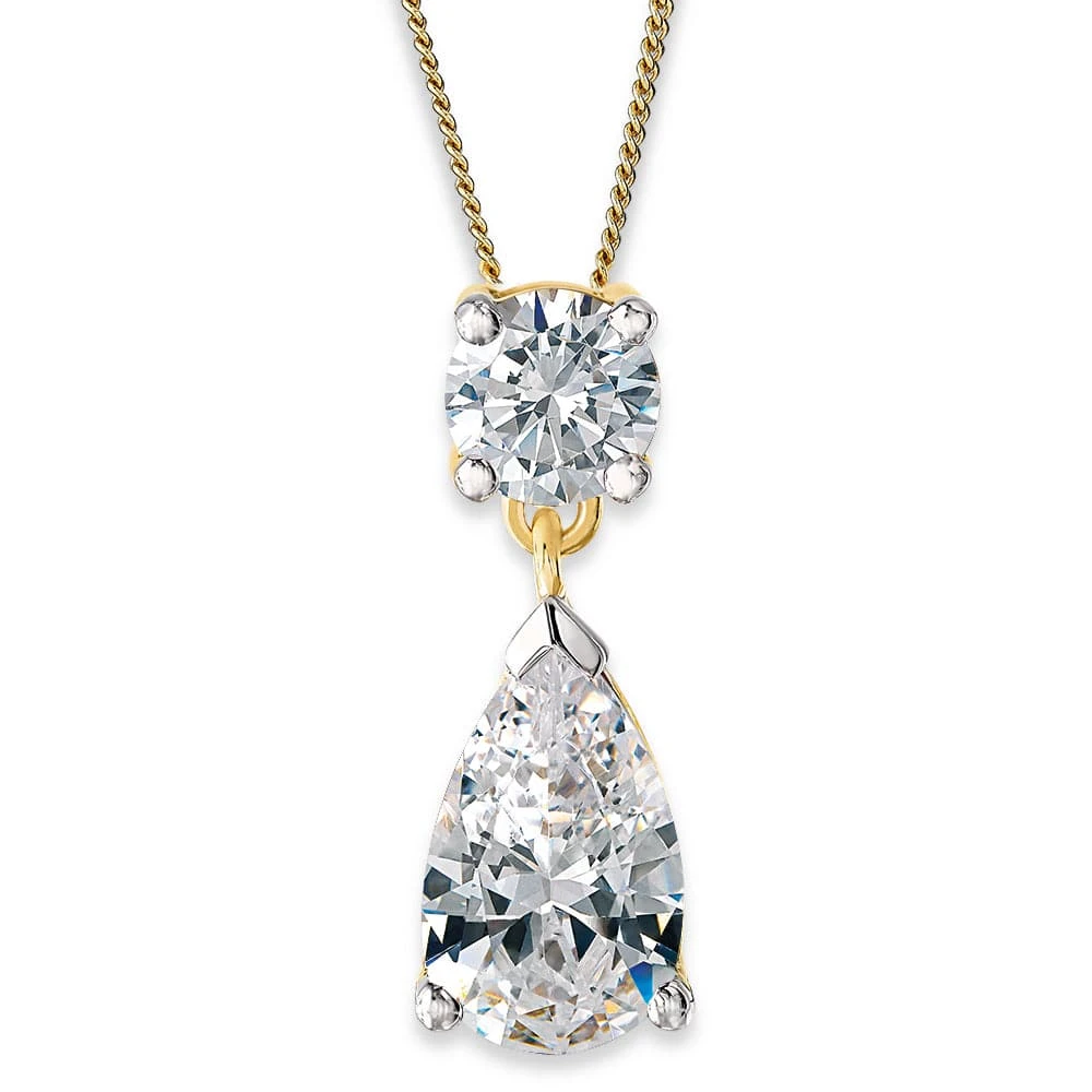 Dare to turn heads with our Boldly Beautiful Pendant. It boasts an impressive 4 ct. t.w. and showcases both a pear and a round brilliant cut, ice white Tru-Diamonds™ stone.