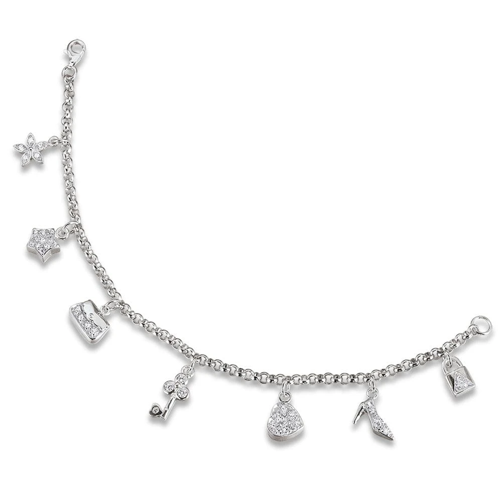 Seven dainty and exquisite Tru-Diamonds™ encrusted charms are suspended gracefully on a 7-inch chain to fashion this elegant Charm Bracelet.