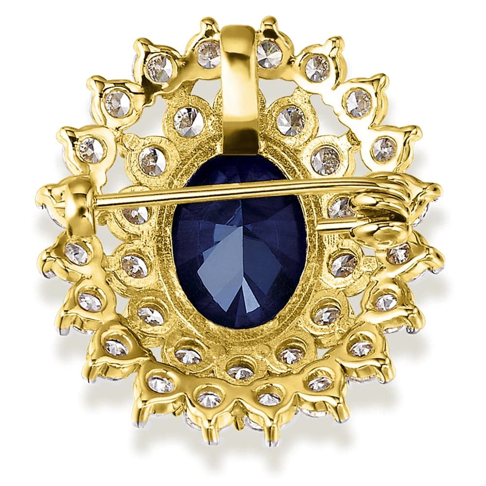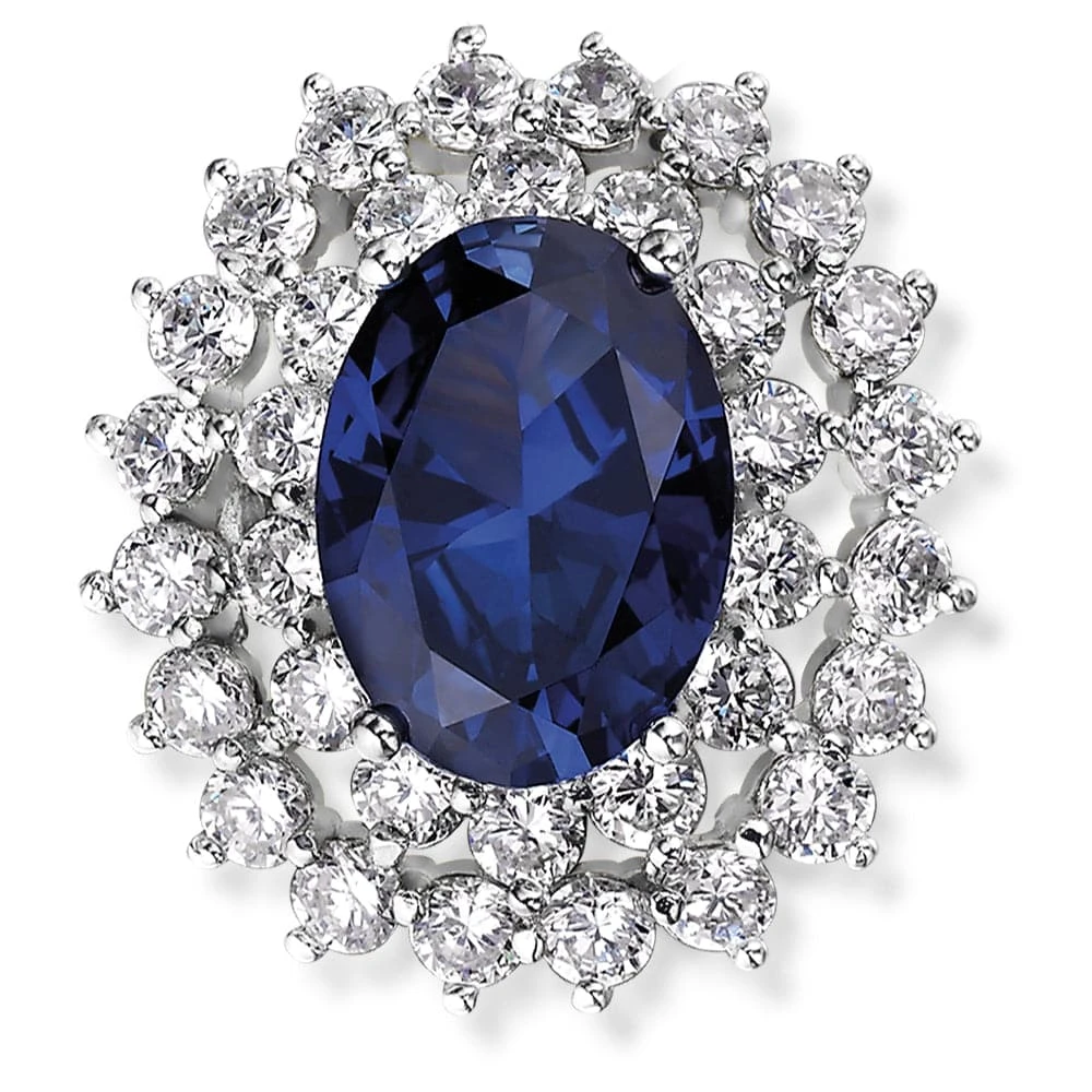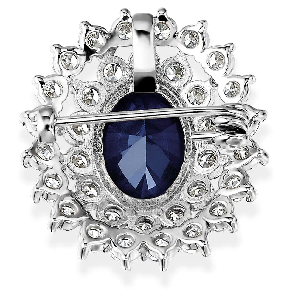 Our Tru-Sapphire Royal Brooch features a stunning Tru-Sapphire centre stone, surrounded by a glistening cluster of ice white Tru-Diamonds™ stones. It has a total carat weight of 11.4, making this piece difficult to miss. This classy piece is one you won’t regret adding to your jewellery collection.