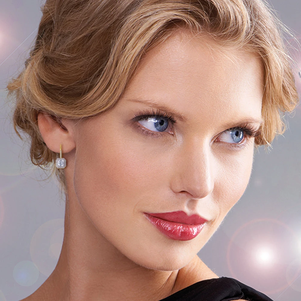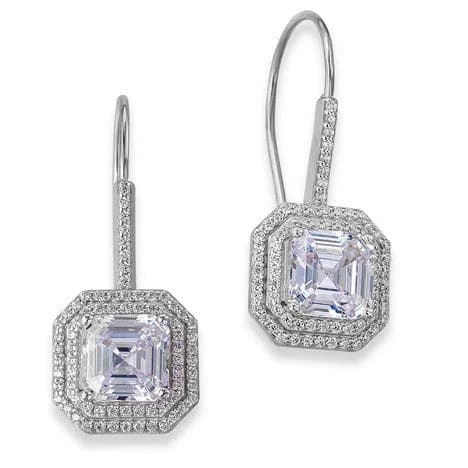 Double the halo, double the sparkle. Our Double Halo Asscher Drops showcase a 1 ct. Asscher cut Tru-Diamonds™ stone framed by a double halo of pavé set gems – giving you a look of sheer elegance.