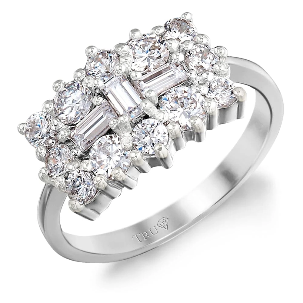 Go wild with modern fashion and embrace this dynamic design! The Elegant Splendour Cluster Ring has a total weight of 1.7 ct. Tru-Diamonds™ gems.