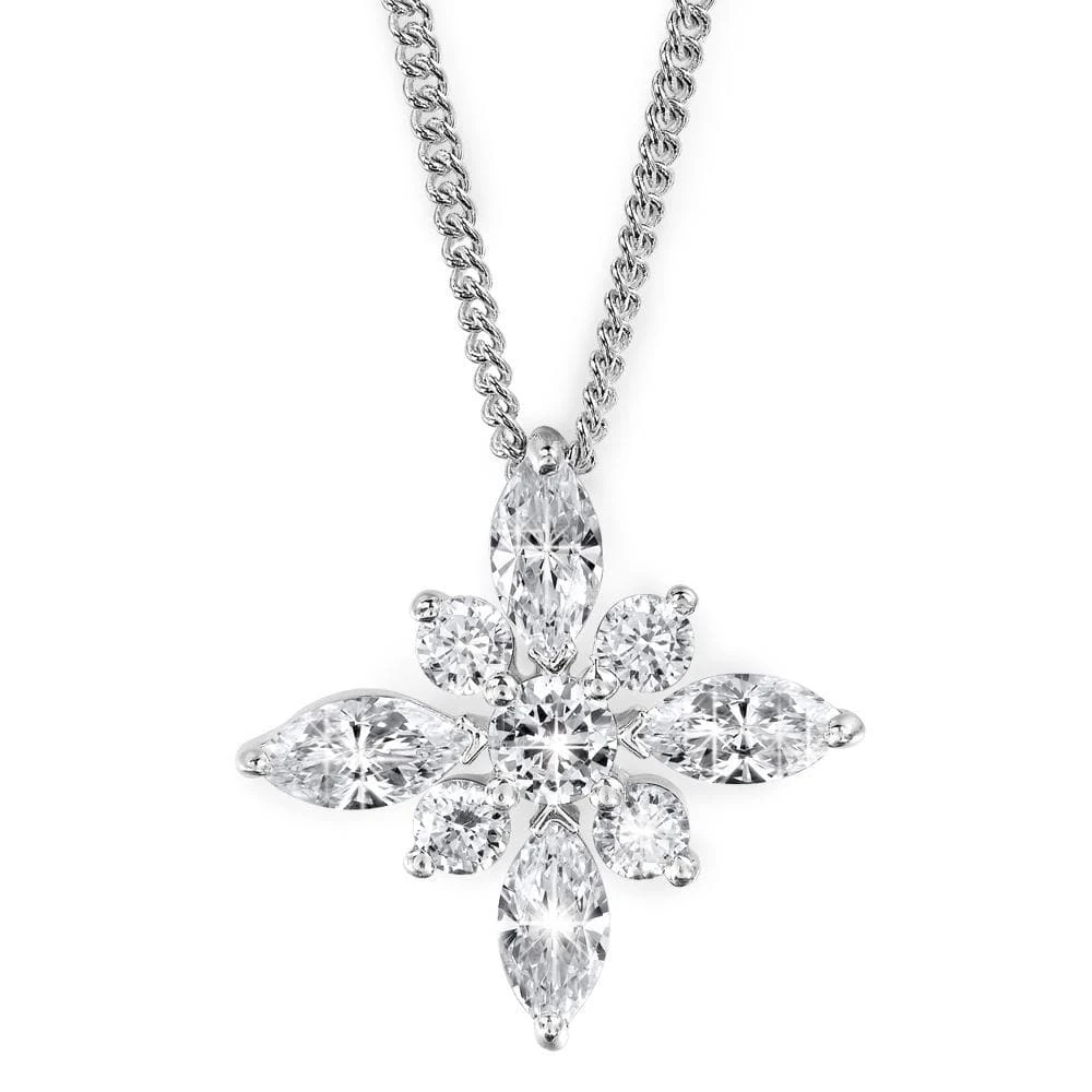 The Floral Posy Pendant has a round cut centre stone, surrounded by smaller sparkling Tru-Diamonds™ gems to make sure that this piece attracts attention.