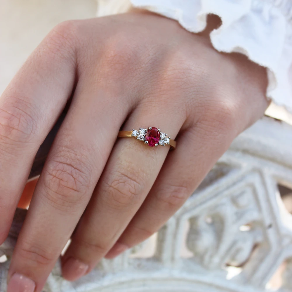 The La Bella Tru-Ruby Ring consists of a Tru-Ruby and 6 round Tru-Diamonds™ gems, making it an elegant ring for any occasion.