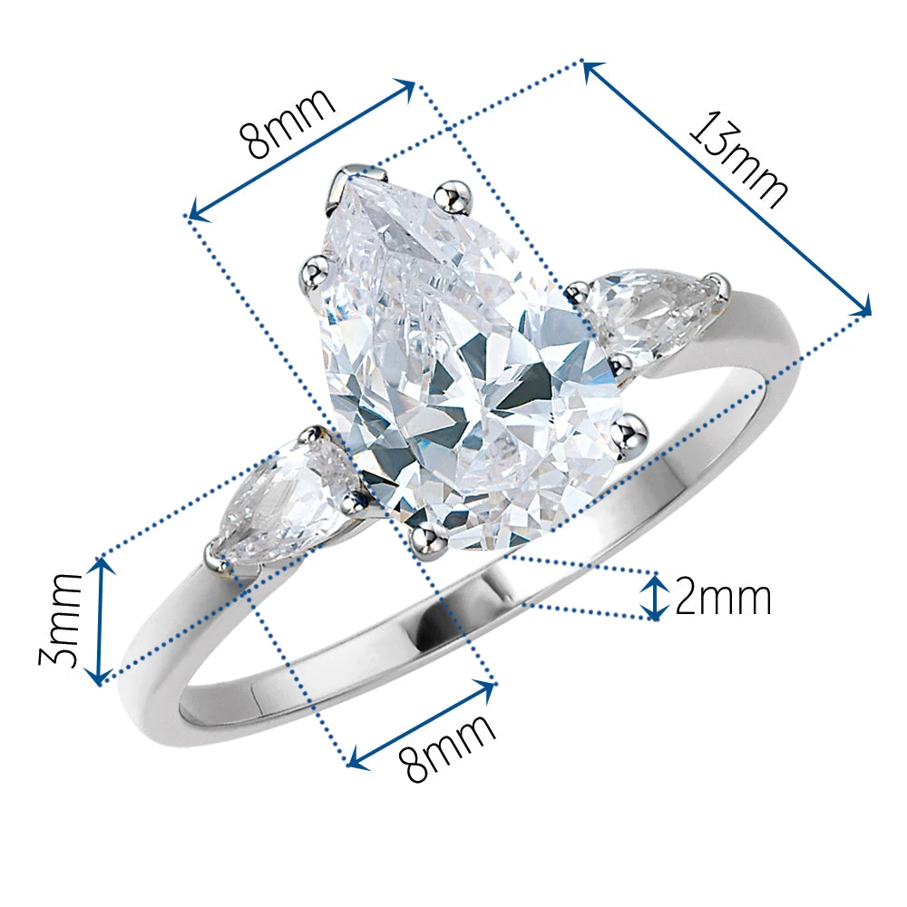 Designed to capture the essence of Mia Farrow’s enchanting allure and enduring charm. At its centre shimmers a magnificent 3 carat pear cut Tru-Diamond, chosen for its unparalleled brilliance and captivating sparkle, symbolising Farrow’s radiant presence both on and off the screen. Flanking the centre Tru-Diamond are two equally stunning pear cut Tru-Diamonds™ gems, mirroring Farrow’s exquisite symmetry and graceful poise, just like her role as Daisy in the 1974, The Great Gatsby.