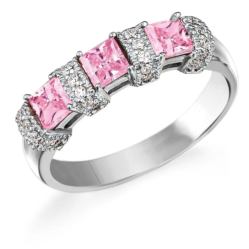 A uniquely beautiful ring guaranteed to have compliments streaming your way. A trilogy of perfectly matched princess-cut pink Tru-Diamonds™ create the focal point of the Pink Parfait Ring while interlacing Tru-Diamond sparkle.