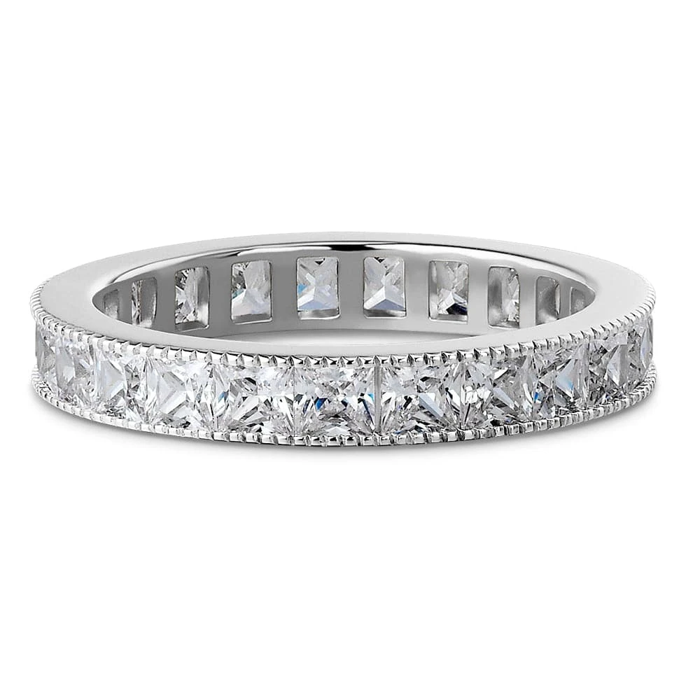 Bring on the royal glamour with the Princess Style Eternity Ring! The total carat weight of 4.4 ct. Tru-Diamonds™ gems turns this piece into a show-stopper!