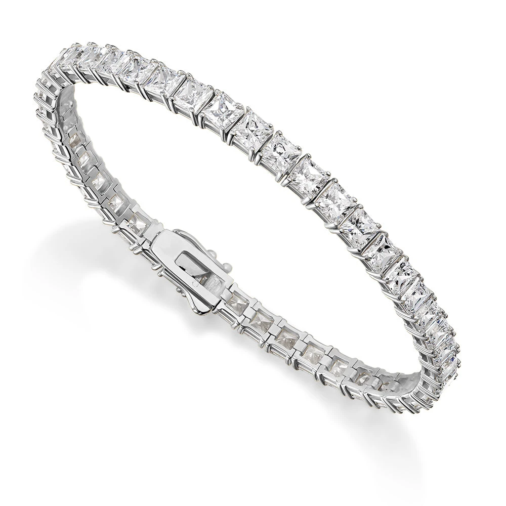A true showstopper. This luxurious bracelet boasts 15.2 carats of princess-cut stones, shimmering in perfect symmetry. A must-have for anyone who loves bold, dazzling accessories.