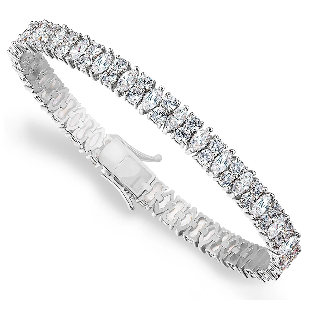 A luxurious statement piece that exudes elegance and timeless beauty, this 7-inch tennis bracelet showcases a stunning array of marquise-cut Tru-Diamonds, meticulously set to captivate and dazzle with every movement. Boasting a total weight of 13.5 carats, the bracelet sparkles with an unparalleled brilliance. The Sparkling Delight Bracelet adds a touch of glamour to any ensemble, making it an essential addition to your jewellery collection.