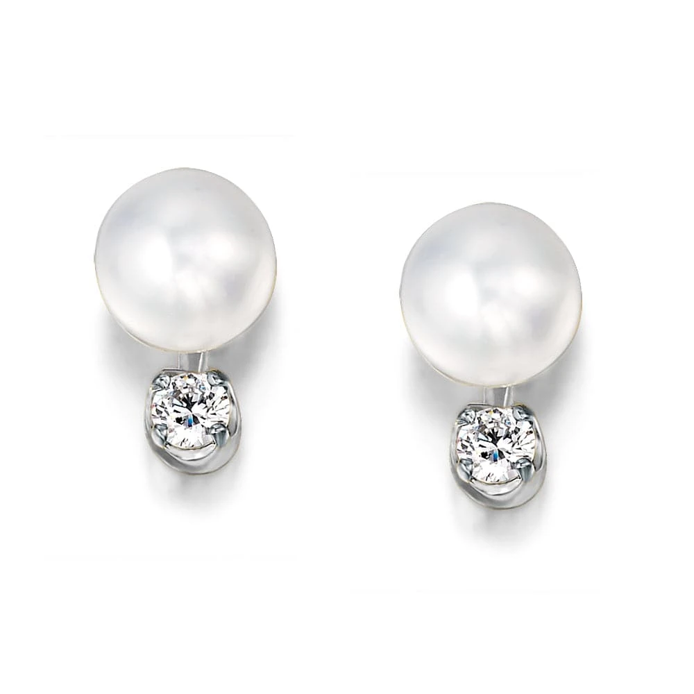 These classic earrings feature a simulated pearl with a Tru-Diamonds™ stud hanging just below, adding that extra touch of elegance for your everyday look that can take you from the day into the night.