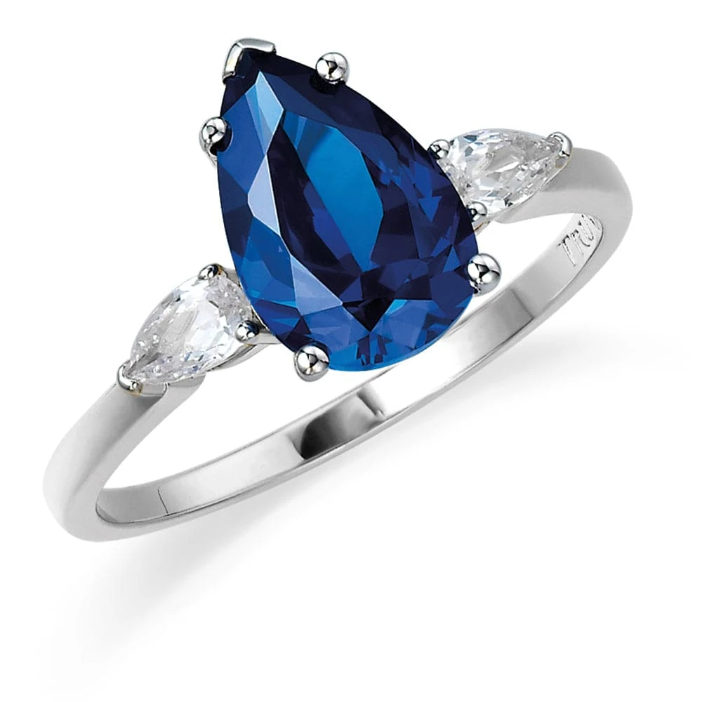 Our Tru-Blue replica ring, inspired by The Winston Blue, boasts a wearable but eye-popping 3-carat Pear Cut Vivid Blue Tru-Diamonds™ centre gem with two 0.75-carat flawless, pure white Tru-Diamonds flanking it.