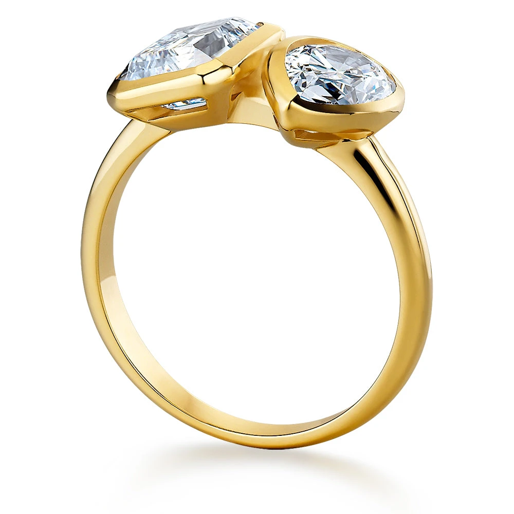 Immerse yourself in the harmonious blend of elegance and modernity with the captivating 2ct Pear and 2ct Emerald Stone Bezel Setting Ring. This extraordinary piece seamlessly marries the classic allure of pear-cut diamonds with the contemporary sophistication of emerald-cut gemstones, all embraced within a sleek and chic bezel setting.