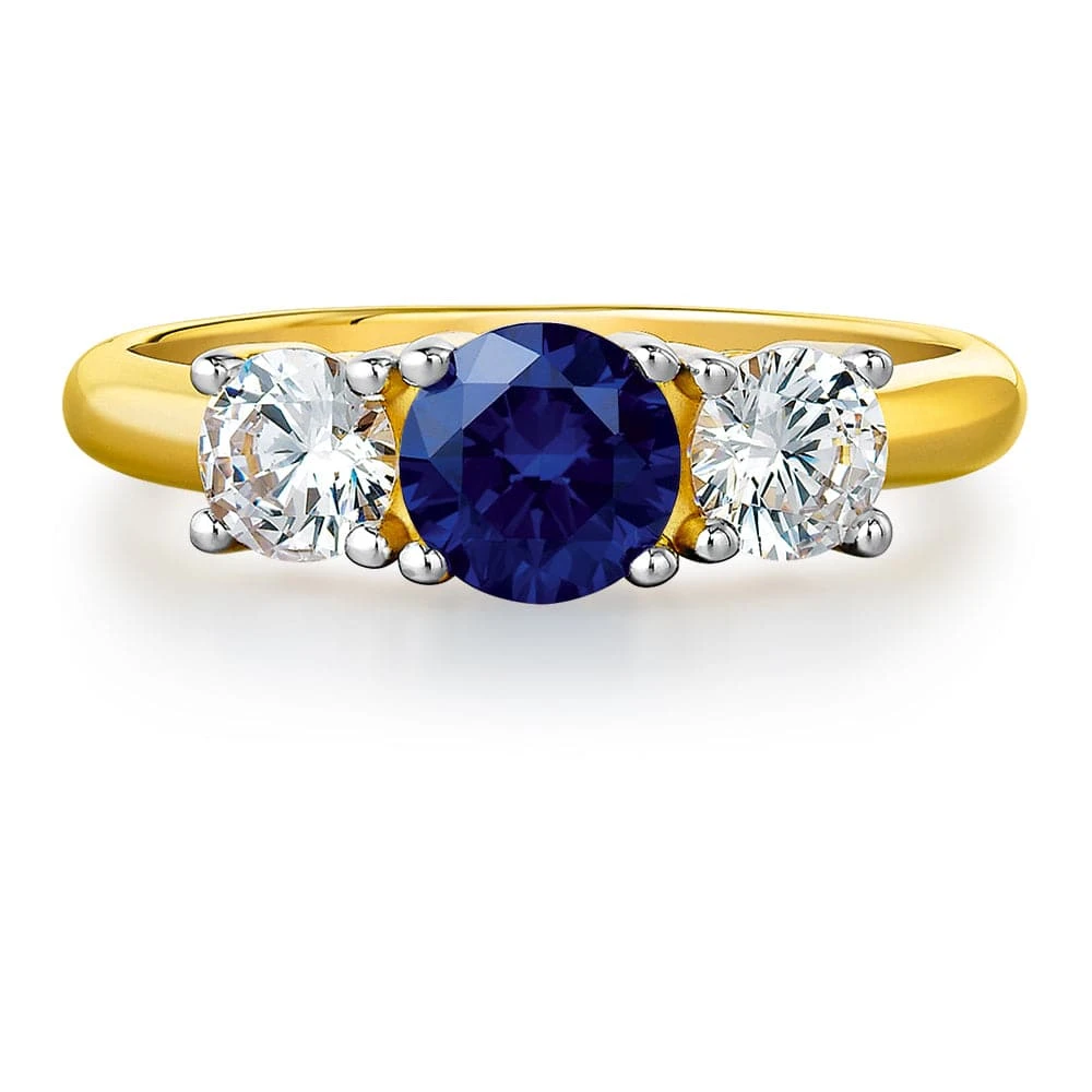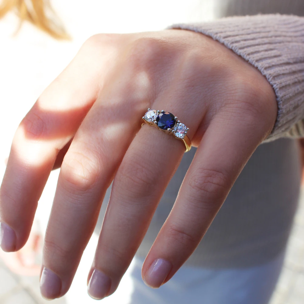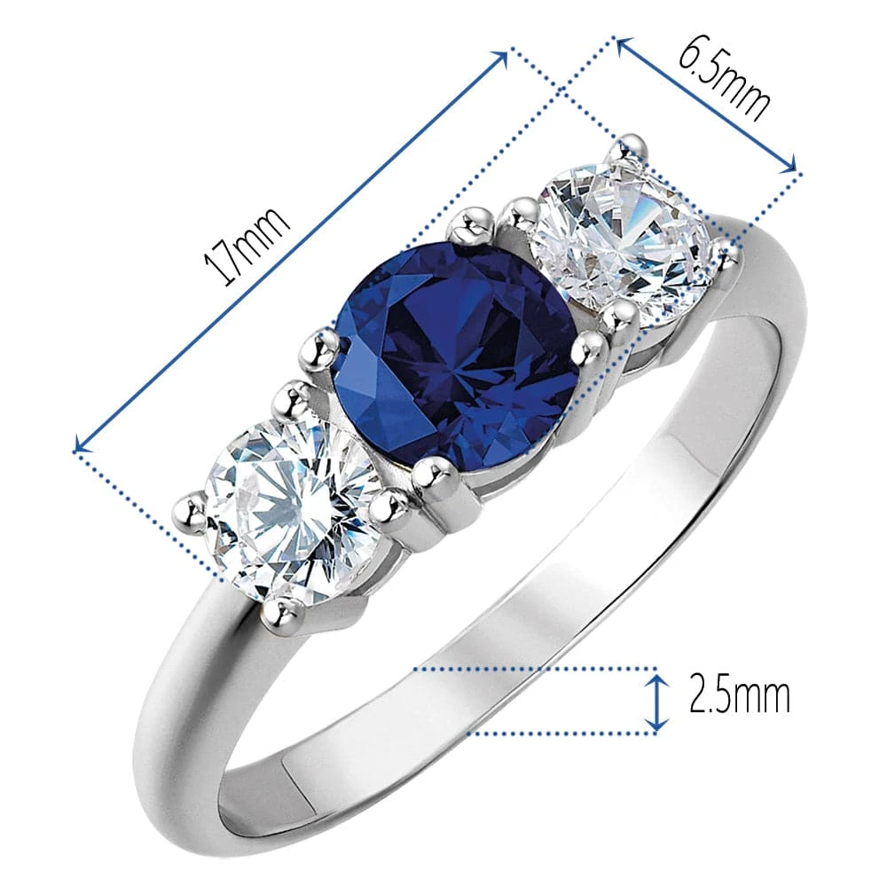 Set in a classic triple claw setting, our Sapphire Trilogy Ring displays a 1 ct. Tru-Sapphire centre stone flanked by two perfectly matching 0.5 carat round brilliant cut, ice white Tru-Diamonds™ stones, making it a true testament to style. It’s an investment piece that is sure to bedazzle your friends at any event.
